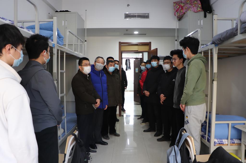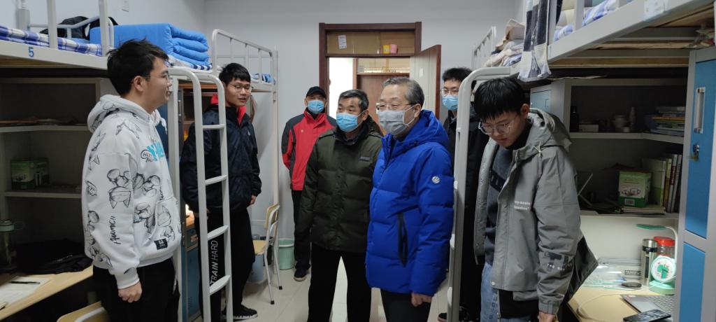 走访过程中,吕校长详细了解了同学们的日常生活和网课学习情况,耐心询问同学们在校内的学习和生活是否存在困难,向同学们送上了真切的关怀和慰问。吕校长叮嘱同学们做好新形势下的个人防护和自我管理,注意宿舍内的卫生情况,按时通风、及时清理垃圾,保持积极向上的良好心态,加强体育锻炼,积极参加学院组织开展的体育活动,并强调同学们如果在生活和学习上遇到困难一定及时向辅导员和学院领导反馈,共同营造舒适安全的校园学习环境。