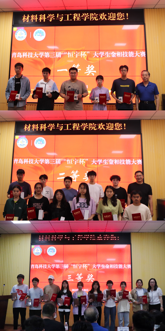 为进一步推进教育改革与教学创新,提高创新型人才培养质量,学院于5月23日成功举办了青岛科技大学第三届“恒宇杯”大学生金相技能大赛。5月30日下午,学院在yl23455永利官网楼101举行青岛科技大学第三届“恒宇杯”金相技能大赛颁奖仪式。