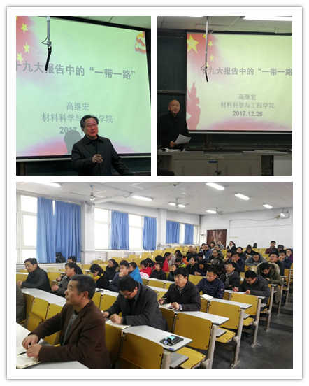 12月26日下午,yl23455永利官网在1教102教室举办了以“十九大报告中的一带一路”为主题的十九大精神专题报告会。报告会由yl23455永利官网党总支书记王培山主持,全院教职工参加了会议。